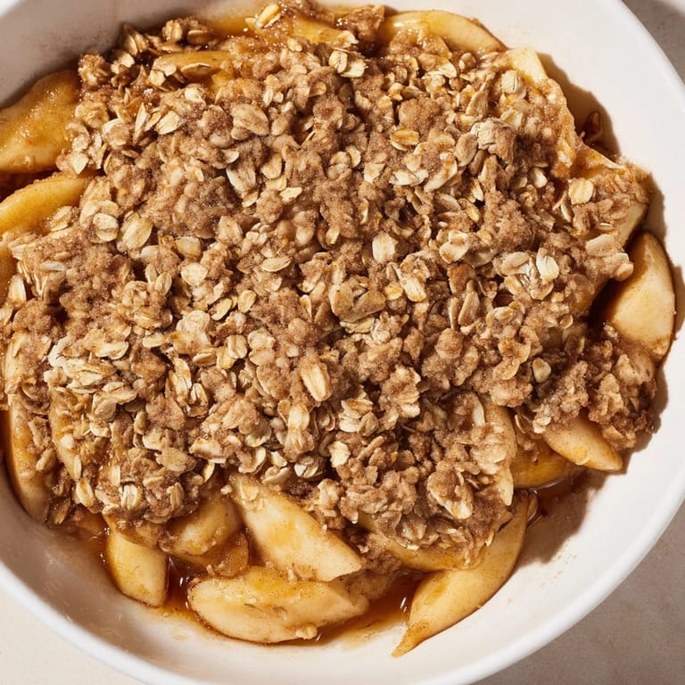 Save A comforting, classic dessert featuring tender, juicy apples topped with a golden, crunchy oat crumble. Perfect for a quick and easy treat using store-bought frozen apples.