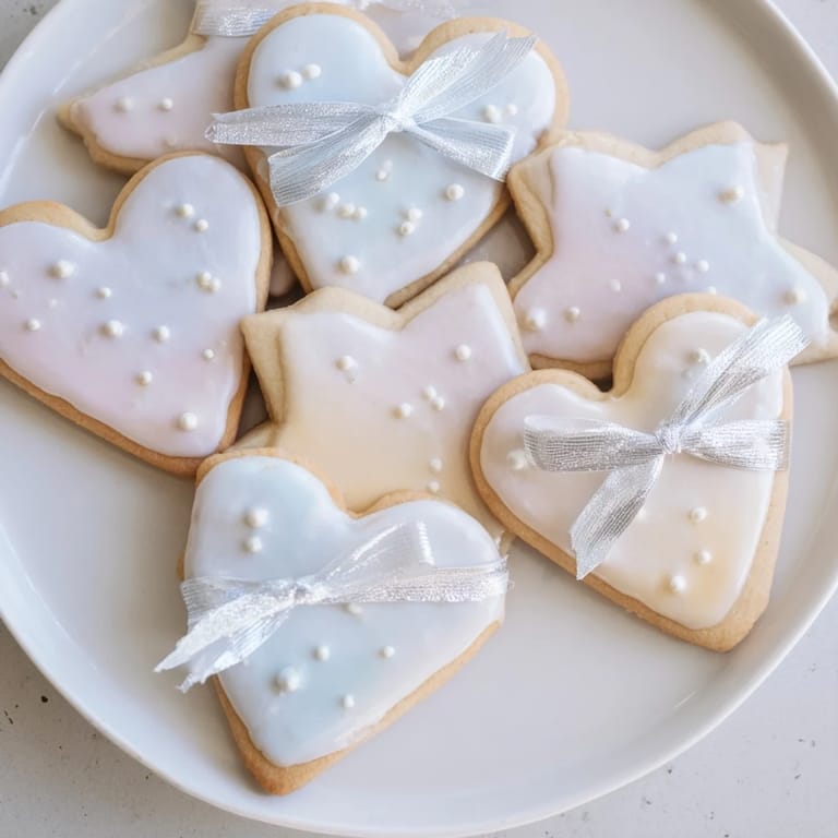 Save Adorable heart and star-shaped cookies tied with ribbons, perfect for gifting or festive occasions. These buttery treats are delicately flavored with vanilla and can be decorated as you wish.