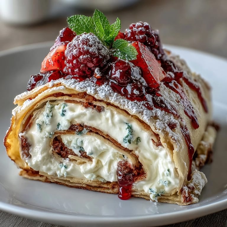 Save As I was tinkering around one spring afternoon, the idea to transform classic French crepes into a dramatic rolled cake sprang from a stray carton of berries in my fridge and a craving for something both delicate and showstopping. The sound of cream whipping—steady and rhythmic—made the entire kitchen feel anticipatory, a bit like setting a stage. Rolling the crepes was unexpectedly therapeutic, with the slight tension of hoping nothing would split and the small thrill as the layers came together. The scent of buttery crepes lingered in the house for hours afterward, hinting at something special waiting in the fridge. And no one can resist the moment when a neat slice reveals those stacked ribbons of fruit and cream inside.