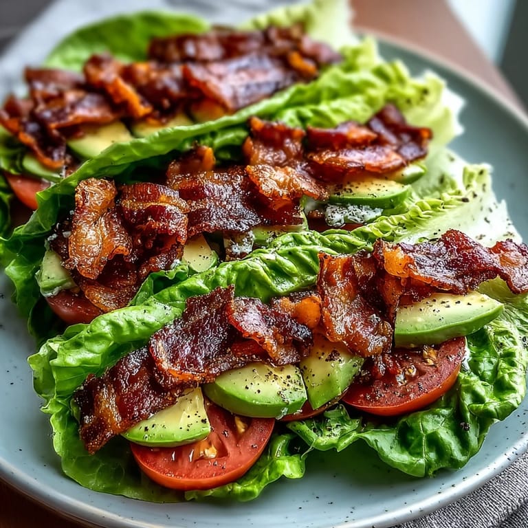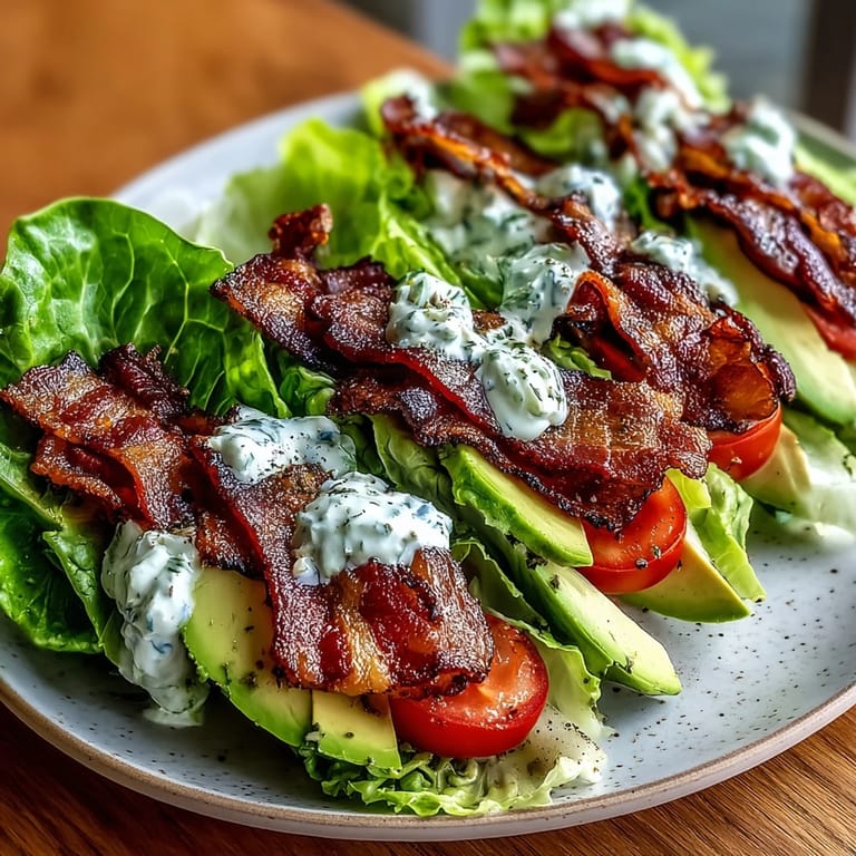 Save This recipe transforms the beloved bacon, lettuce, and tomato sandwich into a light yet filling meal. By swapping bread for crisp romaine or iceberg leaves, you get a satisfying crunch that perfectly complements the creamy avocado and punchy garlic-infused mayonnaise.