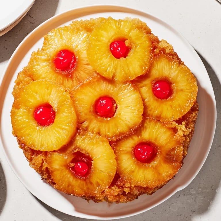 Grease the cake pan thoroughly before placing pineapple rings to ensure smooth release after baking.