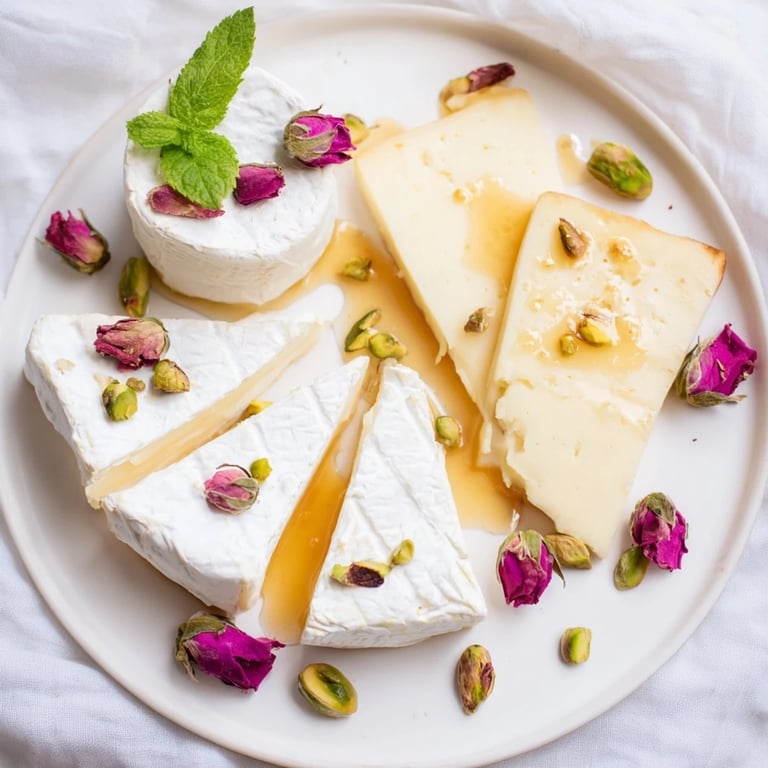 - Nuts & Accents: 2 tbsp roasted pistachios, 2 tbsp honey, for drizzling, 1 tbsp rose petal jam (optional)