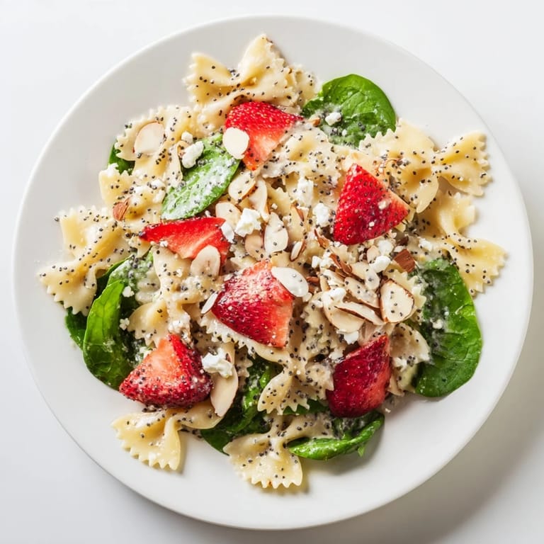 Save My neighbor showed up at my door one Saturday morning with a bowl covered in foil, insisting I try what she called her spring picnic secret. Inside was this kaleidoscope of pink strawberries, green spinach, and delicate pasta bows tossed in something sweet and tangy. I stood there in my pajamas, fork in hand, realizing I'd been making pasta salad wrong my entire life. By Monday I was in her kitchen, notebook open, learning how she turned something so simple into the dish everyone asks her to bring.