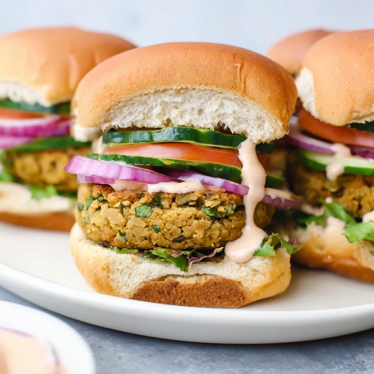 Save I stumbled on these sliders during a lazy Sunday when I had leftover chickpeas and no real plan. My kitchen smelled like garlic and cumin before I even realized what I was making. The patties came out golden and crisp at the edges, nothing like the dense, oily versions I'd tried before. I piled them onto tiny buns with way too much tahini sauce, and they disappeared faster than I could plate them. That's when I knew this wasn't just another weeknight experiment.