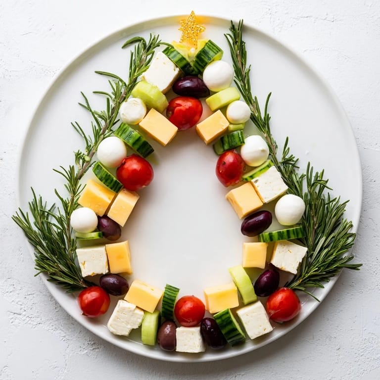 - Fresh Elements & Garnishes: 1 small bunch fresh rosemary sprigs, 8 10 cherry tomatoes, 1 small red bell pepper, diced (for ornaments), 1 cucumber, sliced (to form tree branches)