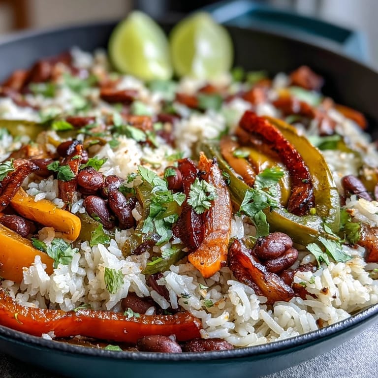 Save Bring the vibrant colors and bold flavors of a Mexican-inspired fiesta to your kitchen with this One-Pan Vegan Fajita Rice Skillet. This dish is a satisfying celebration of smoky spices, tender bell peppers, and hearty black beans, all cooked in a single pan for a stress-free weeknight dinner that is as nutritious as it is delicious.