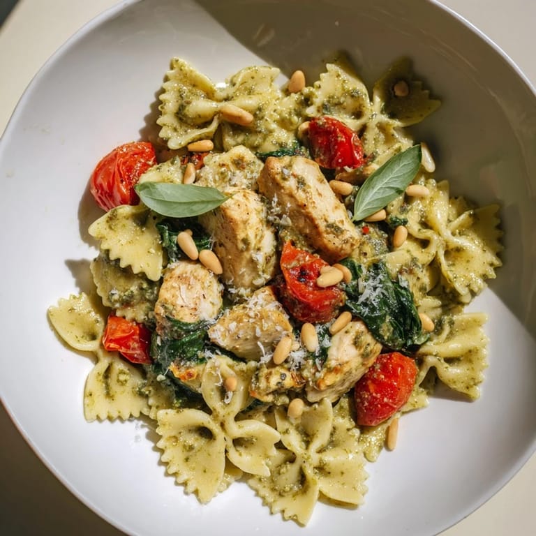 I first made this pesto chicken bowtie pasta on a hectic Tuesday evening. The aroma of basil and garlic instantly lifted everyone's mood, and it quickly became a favorite go-to dish for my family.