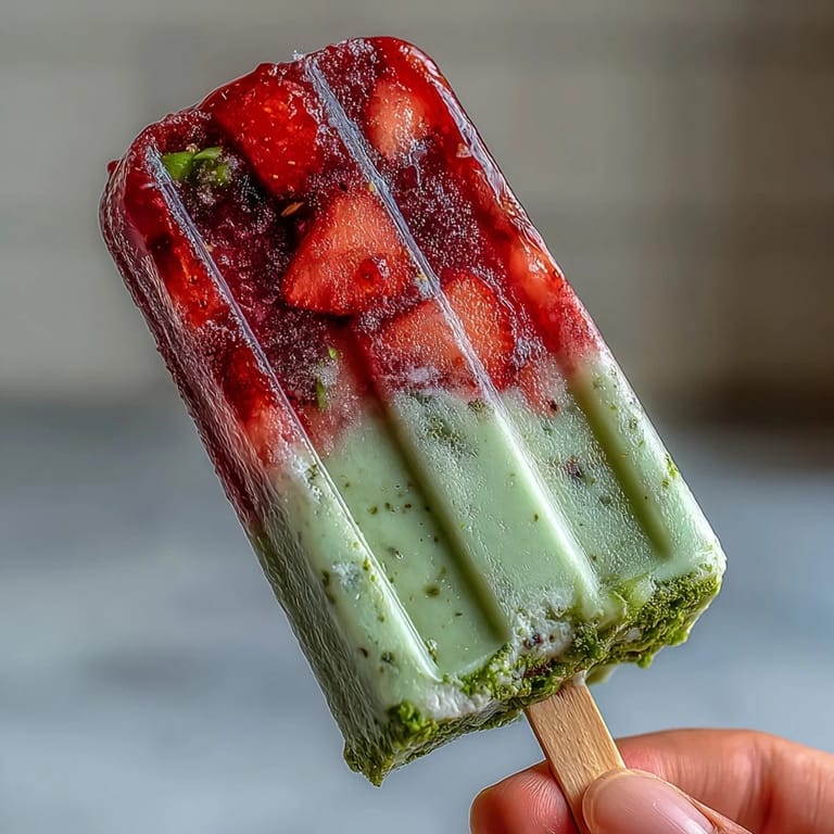 Save When summer heat meets the desire for something both indulgent and refreshing, these Strawberry Matcha Latte Popsicles deliver the perfect balance. Imagine the vibrant sweetness of ripe strawberries swirled with the earthy, creamy notes of matcha green tea—all frozen into a treat that's as beautiful as it is delicious. These popsicles aren't just a dessert; they're a celebration of contrasts, where fruity brightness dances with the calming essence of matcha, creating layers of flavor and color that make every bite feel special.