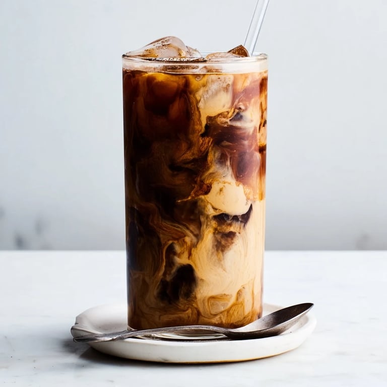 Save A rich and nutty twist on classic iced coffee, blending smooth tahini with cold brew and a touch of sweetness for a creamy, refreshing drink.