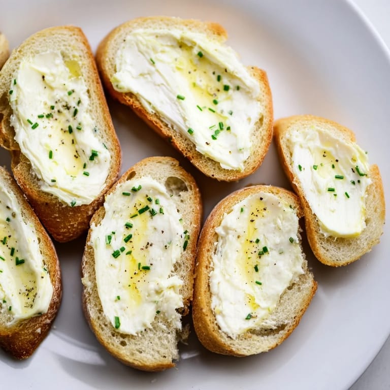 A fresh baguette sliced evenly into half-inch pieces provides the ideal texture—crispy on the outside while maintaining a tender crumb inside.